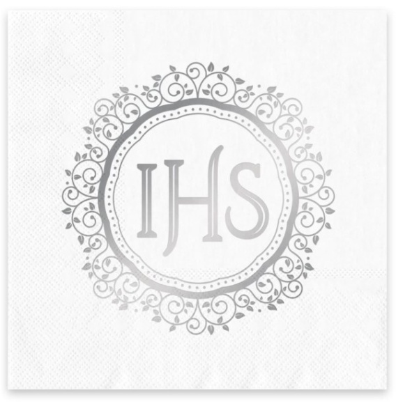 Serwetki komunijne IHS biało-srebrne 10szt.