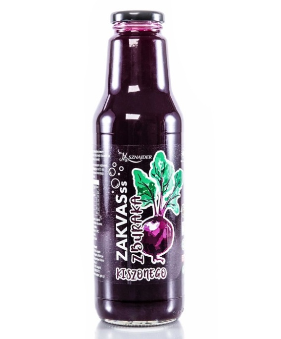 Składniki: sok wytłoczony z kiszonych buraczków (buraki i czosnek z własnych upraw, woda, sól kamienna z Kłodawy).
